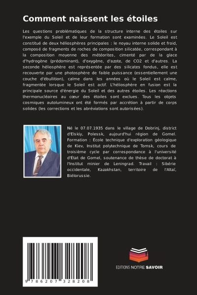 Les questions problématiques de la structure interne des étoiles sur l'exemple du Soleil et de leur formation sont examinées. Le Soleil est constitué de deux héliosphères principales : le noyau interne solide et froid, composé de fragments de roches de composition silicatée, correspondant à la composition moyenne des météorites, cimenté par de la glace d'hydrogène (prédominant), d'oxygène, d'azote, de CO2 et d'autres. La seconde héliosphère est représentée par des silicates fondus, elle est recouverte par une photosphère de faible puissance (essentiellement une couche d'ébullition), calme dans les années où le Soleil est calme, fragmentée lorsque le Soleil est actif. L'héliosphère en fusion est la principale source d'énergie du Soleil et des autres étoiles. Les réactions thermonucléaires au coeur des étoiles sont exclues. Tous les objets cosmiques autolumineux ont été formés par accrétion à partir de corps solides (les corrections et les abréviations sont autorisées).