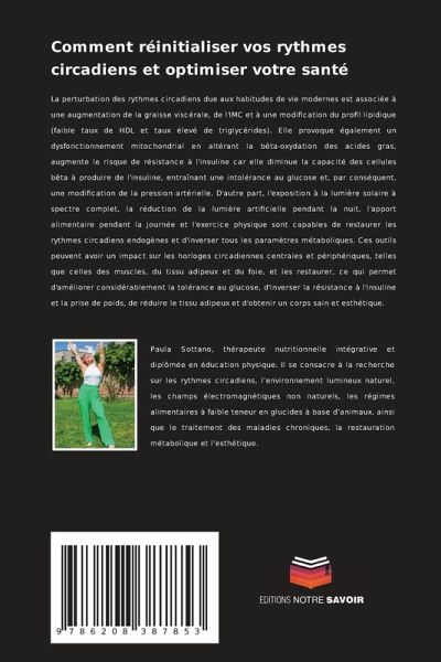 La perturbation des rythmes circadiens due aux habitudes de vie modernes est associée à une augmentation de la graisse viscérale, de l'IMC et à une modification du profil lipidique (faible taux de HDL et taux élevé de triglycérides). Elle provoque également un dysfonctionnement mitochondrial en altérant la bêta-oxydation des acides gras, augmente le risque de résistance à l'insuline car elle diminue la capacité des cellules bêta à produire de l'insuline, entraînant une intolérance au glucose et, par conséquent, une modification de la pression artérielle. D'autre part, l'exposition à la lumière solaire à spectre complet, la réduction de la lumière artificielle pendant la nuit, l'apport alimentaire pendant la journée et l'exercice physique sont capables de restaurer les rythmes circadiens endogènes et d'inverser tous les paramètres métaboliques. Ces outils peuvent avoir un impact sur les horloges circadiennes centrales et périphériques, telles que celles des muscles, du tissu adipeux et du foie, et les restaurer, ce qui permet d'améliorer considérablement la tolérance au glucose, d'inverser la résistance à l'insuline et la prise de poids, de réduire le tissu adipeux et d'obtenir un corps sain et esthétique.