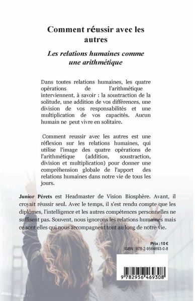 Dans toutes relations humaines,les quatre opérations de l'arithmétique interviennent.Il y a la soustraction de la solitude,une addition de vos différences,une division de vos responsabilités et une multiplication de vos capacités.Aucun humain ne peut vivre en solitaire. Comment réussir avec les autres est une réflexion sur les relations humaines,qui utilise l'image de quatre opérations de l'arithmétique pour donner une compréhension globale de l'apport des relations humaines dans notre vie de tous les jours.