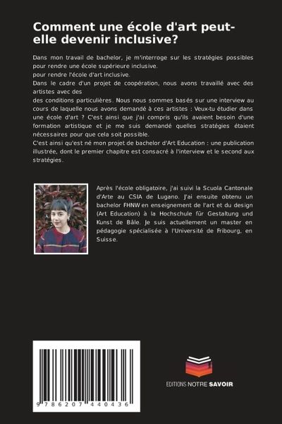 Dans mon travail de bachelor, je m'interroge sur les stratégies possibles pour rendre une école supérieure inclusive.pour rendre l'école d'art inclusive.Dans le cadre d'un projet de coopération, nous avons travaillé avec des artistes avec desdes conditions particulières. Nous nous sommes basés sur une interview au cours de laquelle nous avons demandé à ces artistes : Veux-tu étudier dans une école d'art ? C'est ainsi que j'ai compris qu'ils avaient besoin d'une formation artistique et je me suis demandé quelles stratégies étaient nécessaires pour que cela soit possible.C'est ainsi qu'est né mon projet de bachelor d'Art Education : une publication illustrée, dont le premier chapitre est consacré à l'interview et le second aux stratégies.