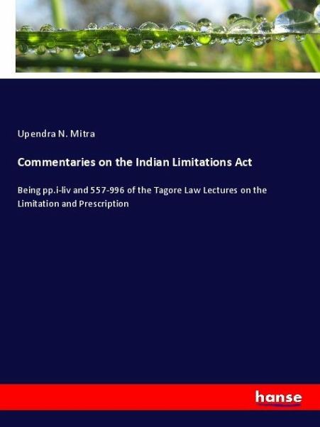 Commentaries on the Indian Limitations Act - Being pp.i-liv and 557-996 of the Tagore Law Lectures on the Limitation and Prescription is an unchanged, high-quality reprint of the original edition of 1898.Hansebooks is editor of the literature on different topic areas such as research and science, travel and expeditions, cooking and nutrition, medicine, and other genres. As a publisher we focus on the preservation of historical literature. Many works of historical writers and scientists are available today as antiques only. Hansebooks newly publishes these books and contributes to the preservation of literature which has become rare and historical knowledge for the future.