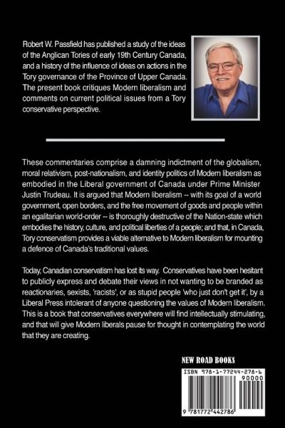 These commentaries comprise a damning indictment of the globalism, moral relativism, post-nationalism, and identity politics of modern liberalism as embodied in Canada's current federal government. Author Robert W. Passfield argues that modern liberalism, with its goal of a world government, open borders, and the free movement of goods and people within an egalitarian world order, is thoroughly destructive of the nation-state, which embodies the history, culture, and political liberties of a people; and that, in Canada, Tory conservatism provides a viable alternative for mounting a defence of Canada's traditional values. This is a book that conservatives everywhere will find intellectually stimulating, and that will give modern liberals pause for thought in contemplating the world that they are creating.