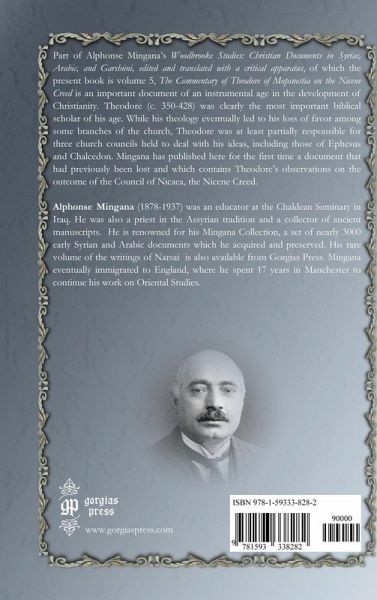 The Commentary of Theodore of Mopsuestia on the Nicene Creed is an important document of an instrumental age in the development of Christianity. Theodore (c. 350-428) was clearly the most important biblical scholar of his age. While his theology eventually led to his loss of favor among some branches of the church, Theodore was at least partially responsible for three church councils held to deal with his ideas, including those of Ephesus and Chalcedon. Mingana has published here, as Woodbrooke Studies 5, for the first time a document that had previously been lost and which contains Theodore's observations on the outcome of the Council of Nicaea, the Nicene Creed.