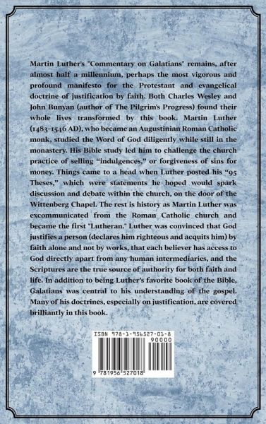 This annotated edition of "Commentary on Galatians" includes an extra appendix (in addition to the two already included in the original book) which provides an interesting overview of: Martin Luther's peasant roots, his education in pre-law, and how he was diverted from a law career to that of a monk-turned-professor and eventually, Protestant reformer, The role of the printing press in spreading the "95 Theses" quickly over Europe, catapulting Martin Luther to near-instant prominence in the religious dialogue of his day, The story of how Martin Luther colluded with a fishmonger to smuggle his future wife and her friends away from a convent, and Martin Luther's impact on the Protestant Reformation as well as modern religious thought. In "Commentary on Galatians," Martin Luther expounds Paul's epistle with an insight, power, and depth of emotion which is sorely lacking in modern commentaries. From the very first page of this book, Luther cuts to the heart of the epistle-the doctrine of justification-in the way that only he can. His bold words and plain-sense interpretations result in a work filled with much of the same force and passion that characterized the epistle itself. The grace of God and the love of Jesus Christ cling to every word like the scent of a precious perfume. The theology expounded in this book is the very essence of the gospel as understood by the one who "rediscovered" the all-important doctrines of faith and grace. Readers will find in these pages a plain declaration of the power and wisdom of God. A German professor of theology in the 1500's, Martin Luther is considered to be the father of the Protestant Reformation. In 1517, Luther wrote his iconic "95 Theses" in opposition to the sale of indulgences as a "paid for" forgiveness of sin. Thanks to the invention of the printing press, Luther's points of contention, as explained in the "theses," spread across and impacted Europe in record time. When the pope and Emperor Charles V urged Martin Luther to recant, he refused. As a result, he was excommunicated and declared to be an outlaw. Today he is remembered for sparking the Protestant Reformation, making the Bible accessible to the common people through his German translation, rediscovering the great truth of salvation through faith alone, setting an example of marriage for the clergy, and founding the Lutheran Church (among other accomplishments).This edition of Martin Luther's classic includes the introduction by Theodore Graebner.