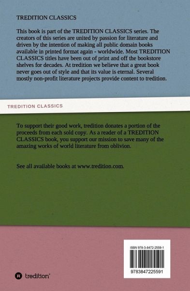 This book is part of the TREDITION CLASSICS series. The creators of this series are united by passion for literature and driven by the intention of making all public domain books available in printed format again - worldwide. At tredition we believe that a great book never goes out of style. Several mostly non-profit literature projects provide content to tredition. To support their good work, tredition donates a portion of the proceeds from each sold copy. As a reader of a TREDITION CLASSICS book, you support our mission to save many of the amazing works of world literature from oblivion.