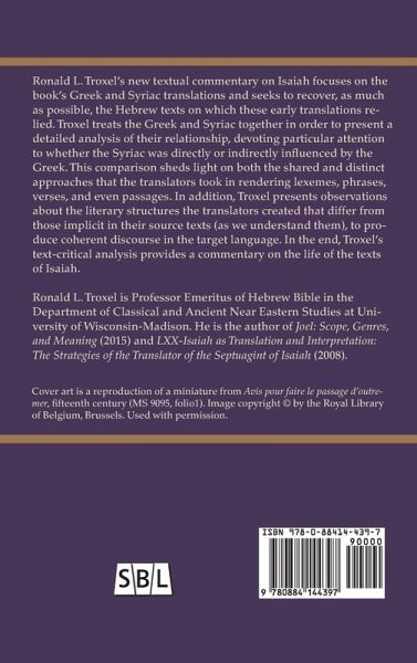 Ronald L. Troxel's new textual commentary on Isaiah focuses on the book's Greek and Syriac translations and seeks to recover, as much as possible, the Hebrew texts on which these early translations relied.