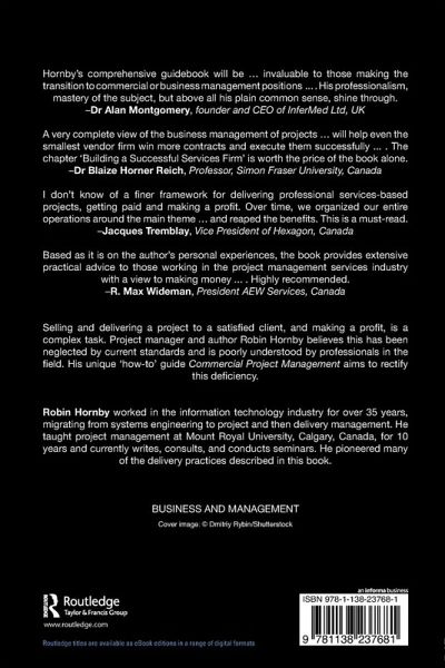 Selling and delivering a project to a satisfied client, and making a profit, is a complex task. Project manager and author Robin Hornby believes this has been neglected by current standards and is poorly understood by professionals in the field. Commercial Project Management aims to rectify this deficiency. As a unique 'how-to' guide for project and business managers, it offers practical guidance, and a wealth of explanatory illustrations, useful techniques, proven checklists, real life examples, and case stories. It will give project managers a needed confidence boost and a head start in their demanding role as they go 'on contract'. At the heart of Robin's approach is a vendor sales and delivery lifecycle that provides a framework for business control of projects. Unique elements include the integration of buyer and vendor project lifecycles, the recasting of project management as a cyclic set of functions to lead the work of the project, and the elevation of risk assessment from a project toolkit to a fundamental control process. Beyond project management, the book proposes a comprehensive template for the firm whose business is delivering projects. This is a how-to book for project and business managers working in a commercial environment looking for practical guidance on conducting their projects and organizing their firm.