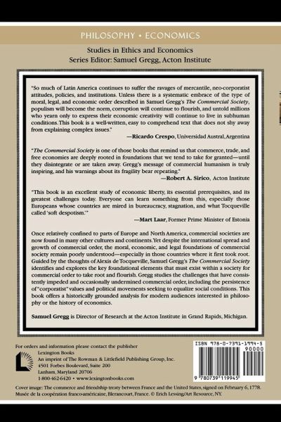 Guided by the thoughts of Alexis de Tocqueville, Samuel Gregg's The Commercial Society identifies and explores the key foundational elements that must exist within a society for commercial order to take root and flourish. Gregg studies the challenges that have consistently impeded and occasionally undermined commercial order.