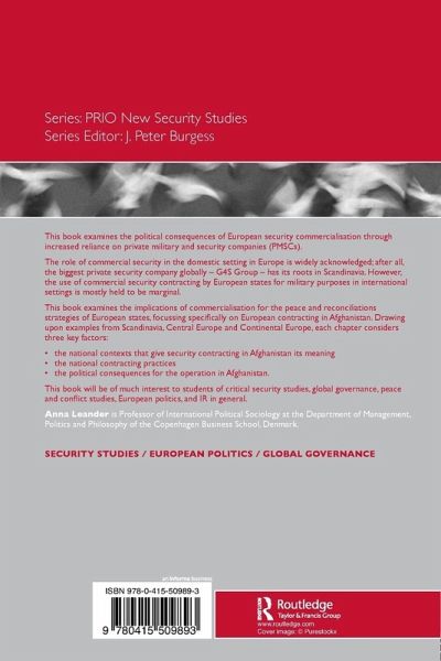 This book examines the political consequences of European security commercialisation through increased reliance on private military and security companies (PMSCs). The role of commercial security in the domestic setting in Europe is widely acknowledged; after all, the biggest private security company globally - G4S Group - has its roots in Scandinavia. However, the use of commercial security contracting by European states for military purposes in international settings is mostly held to be marginal. This book examines the implications of commercialisation for the peace and reconciliations strategies of European states, focussing specifically on European contracting in Afghanistan. Drawing upon examples from Scandinavia, Central Europe and Continental Europe, each chapter considers three key factors: the national contexts that give security contracting in Afghanistan its meaning; the national contracting practices; the political consequences for the operation in Afghanistan. This book will be of much interest to students of critical security studies, global governance, peace and conflict studies, European politics, and IR in general.