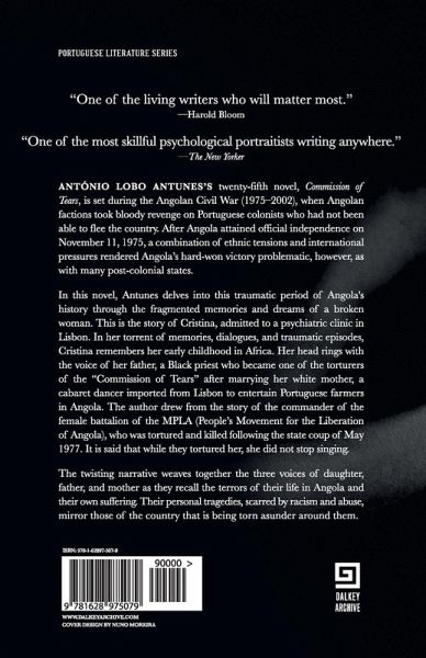 In this novel, Lobo Antunes delves into this traumatic period of Angola's history through the fragmented memories and dreams of a broken woman. The author drew from the story of the commanderof the female battalion MPLA (Popular movement for the liberation of Angola) who was tortured and killed following the state coup of May 1977. It is said that while they tortured her she did not stop singing. This is the story of Cristina, admitted in to a psychiatric clinic in Lisbon. In her torrent of memories, dialogues and traumatic episodes, Cristina remembers her early childhood in Africa, at the time when everything inside her head was intertwined with her father´s voice, who was a former Black priest and became one of the torturers of the "Commission of Tears." Cristina's white mother, a cabaret dancer imported from Lisbon to entertain Portuguese farmers in Angola, marries the Black ex-priest because she finds herself pregnant with Cristina by her the man who exploits her, the cabaret manager. The long, twisting narrative weaves together the three voices of daughter, father, and mother as they recall the terrors of their life in Angola, and their own suffering. Their personal tragedies, scarred by racism and abuse, mirror those of the country that is being torn asunder around them.
