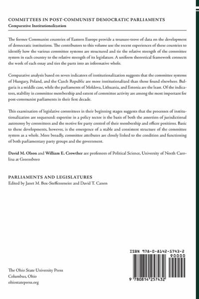 The former Communist countries of Eastern Europe provide a treasure-trove of data on the development of democratic institutions. The contributors to this volume use the recent experiences of these countries to identify how the various committee systems are structured and tie the relative strength of the committee system in each country to the relative strength of its legislature. A uniform theoretical framework connects the work of each essay and ties the parts into an informative whole. Comparative analysis based on seven indicators of institutionalization suggests that the committee systems of Hungary, Poland, and the Czech Republic are more institutionalized than those found elsewhere. Bulgaria is a middle case, while the parliaments of Moldova, Lithuania, and Estonia are the least. Of the indicators, stability in committee membership and extent of committee activity are among the most important for post-communist parliaments in their first decade. This examination of legislative committees in their beginning stages suggests that the processes of institutionalization are sequenced: expertise in a policy sector is the basis of both the assertion of jurisdictional autonomy by committees and the motive for party control of their membership and officer positions. Basic to these developments, however, is the emergence of a stable and consistent structure of the committee system as a whole. More broadly, committee attributes are closely linked to the condition and functioning of both parliamentary party groups and the government.