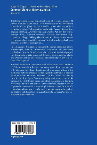 This book series has 10 volumes in total, which covers over 2000 kinds of Chinese medicines that are commonly used. These volumes not only introduce the efficacy function and some prescriptions of the medicines, but also introduce the biological characteristics of them in detail with clear photos of the habitats, so that readers can identify them in the field. Apart from the growing environment, the books expound the distribution areas and other information to facilitate researches and other applications. The volumes are targeted at readers of general interests and it is also of high referential value for scientific researcher and teachers. It can be used as a guide to researchers, clinical doctors, and students in the department of pharmaceutics and traditional Chinese medicine.