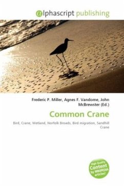 The Common Crane, also known as the Eurasian Crane, is a bird of the family Gruidae, the cranes. It is a large, stately bird and a medium-sized crane at 100-130 cm long, with a 180-240 cm wingspan and a weight of 4.5-6 kg. It is grey with a white facial streak and a bunch of black wing plumes. Adults have a red crown patch. It has a loud trumpeting call, given in flight and display. It has a dancing display, leaping with wings uplifted. It breeds in wetlands in northern parts of Europe and Asia. The global population is in the region of 210,000-250,000, with the vast majority nesting in Russia and Scandinavia.