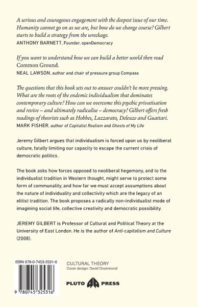 Under neoliberalism the cult of individualism reigns supreme, forced upon us through culture, media and politics, it fatally limits our capacity to escape the current crisis of democratic politics. In Common Ground, Jeremy Gilbert asks us to reimagine the philosophical relationship between individuality, collectivity, affect and agency, proposing a radically non-individualist mode of imagining social life. The book considers how opponents of neoliberal hegemony, and of the individualist tradition in Western thought, might protect collective creativity and democratic possibility. Examination of the historical roots of individualism's 'Leviathan logic' and fresh readings of theorists such as Hobbes, Lazzarato, Simondon, Lyotard, Laclau and Deleuze and Guattari, force us to confront longstanding assumptions about the nature of the individual and of collectivity. Exploration of this fundamental faultline in contemporary politics is accompanied by analysis of the different ideas and practices of collectivity, from conservative notions of hierarchical and patriarchal communities to the politics of 'horizontality' and 'the commons' which lie at the heart of radical movements today. Through an understanding of the philosophy shaping contemporary relations and disrupting hegemonic values, we can re-imagine the present moment.