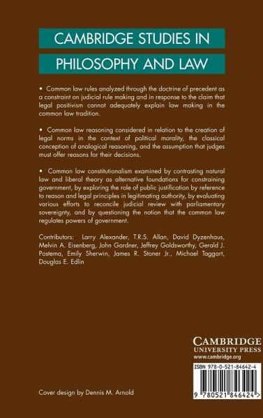 Legal scholars, philosophers, historians, and political scientists from Australia, Canada, New Zealand, the United Kingdom, and the United States analyze the common law through three of its classic themes: rules, reasoning, and constitutionalism. Their essays, specially commissioned for this volume, provide an opportunity for thinkers from different jurisdictions and disciplines to talk to each other and to their wider audience within and beyond the common law world. This book allows scholars and students to consider how these themes and concepts relate to one another. It will initiate and sustain a more inclusive and well-informed theoretical discussion of the common law's method, process, and structure. It will be valuable to lawyers, philosophers, political scientists, and historians interested in constitutional law, comparative law, judicial process, legal theory, law and society, legal history, democratic theory, political philosophy, and the relationship of the common law tradition to other legal systems of the world.