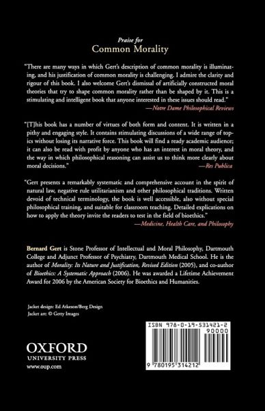 Moral problems do not always come in the form of great social controversies. More often, the moral decisions we make are made quietly, constantly, and within the context of everyday activities and quotidian dilemmas. Indeed, these smaller decisions are based on a moral foundation that few of us ever stop to think about but which guides our every action. Here distinguished philosopher Bernard Gert presents a clear and concise introduction to what he calls "common morality"--the moral system that most thoughtful people implicitly use when making everyday, common sense moral decisions and judgments. Common Morality is useful in that--while not resolving every disagreement on controversial issues--it is able to distinguish between acceptable and unacceptable answers to moral problems.