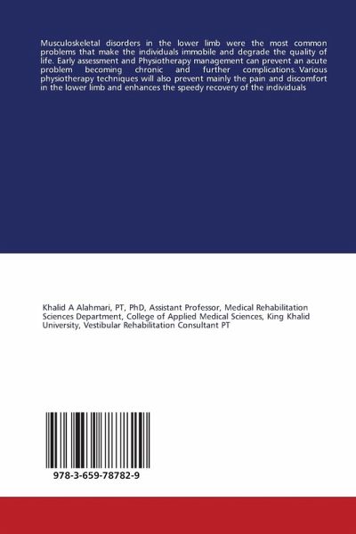 Musculoskeletal disorders in the lower limb were the most common problems that make the individuals immobile and degrade the quality of life. Early assessment and Physiotherapy management can prevent an acute problem becoming chronic and further complications. Various physiotherapy techniques will also prevent mainly the pain and discomfort in the lower limb and enhances the speedy recovery of the individuals