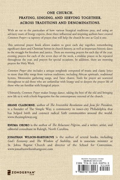 FOR DISTRIBUTION OUTSIDE THE USA. Designed to help individuals, families, and congregations pray, sing, and act together across traditions and denominations, Shane Claiborne, Enuma Okoro, and Jonathan Wilson-Hartgrove offer a book of common prayer to help you and your community join together each day with the same songs, scriptures, and prayers.