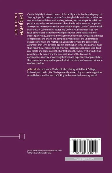 Between 1885 and 1960, laws and policies designed to repress prostitution dramatically shaped London's commercial sex industry. This book examines how laws translated into street-level reality, explores how women who sold sex experienced criminalization, and charts the complex dimensions of the underground sexual economy in the modern metropolis.