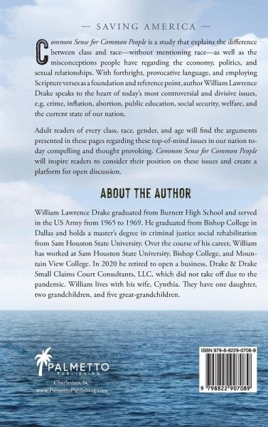 Common Sense for Common People is a study that explains the difference between class and race-without mentioning race-as well as the misconceptions people have regarding the economy, politics, and sexual relationships. With forthright, provocative language, and employing Scripture verses as a foundation and reference point, author William Lawrence Drake speaks to the heart of today's most controversial and divisive issues, e.g. crime, inflation, abortion, public education, social security, welfare, and the current state of our nation. Adult readers of every class, race, gender, and age will find the arguments presented in these pages regarding these top-of-mind issues in our nation today compelling and thought provoking. Common Sense for Common People will inspire readers to consider their position on these issues and create a platform for open discussion.