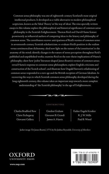 Common sense philosophy was one of eighteenth-century Scotland's most original intellectual products. It developed as a viable alternative to modern philosophical scepticism, known as the 'Ideal Theory' or 'the way of ideas'. The nine specially written essays in this volume explore the philosophical and historical significance of common sense philosophy in the Scottish Enlightenment. Thomas Reid and David Hume feature prominently as influential authors of competing ideas in the history and philosophy of common sense. The contributors recover anticipations of Reid's version of common sense in seventeenth-century Scottish scholasticism; revaluate Reid's position in the realism versus sentimentalism dichotomy; shed new light on the nature of the 'constitution' in the anatomy of the mind; identify changes in the nature of sense perception throughout Reid's published and unpublished works; examine Reid on the non-theist implications of Hume's philosophy; show how 'polite' literature shaped James Beattie's version of common sense; reveal Hume's response to common sense philosophers; explore English criticisms of the Scottish 'school', and how Dugald Stewart's refashioning of common sense responded to a new age and the British reception of German Idealism. In recovering the ways in which Scottish common sense philosophy developed during the long eighteenth century, this volume takes an important step toward a more complete understanding of 'the Scottish philosophy' and British philosophy more broadly in the age of Enlightenment.