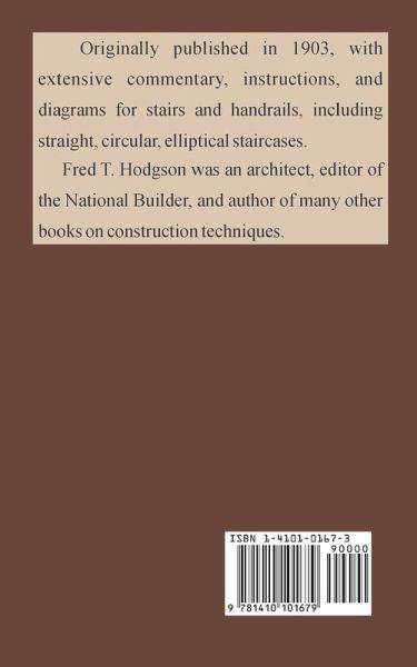 Originally published in 1903, with extensive commentary, instructions, and diagrams for stairs and handrails, including straight, circular, elliptical staricases. Fred T. Hodgson was an architect, editor of the National Builder, and author of many other books on construction techniques.