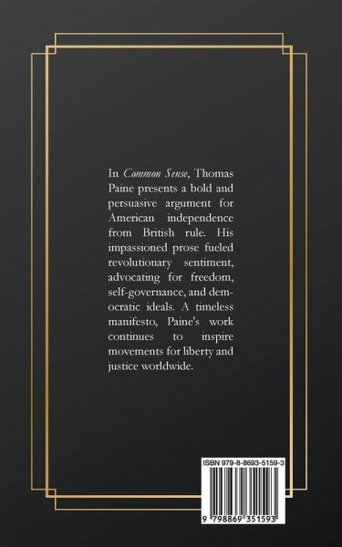 In Common Sense, Thomas Paine presents a bold and persuasive argument for American independence from British rule. His impassioned prose fueled revolutionary sentiment, advocating for freedom, self-governance, and democratic ideals. A timeless manifesto, Paine's work continues to inspire movements for liberty and justice worldwide.
