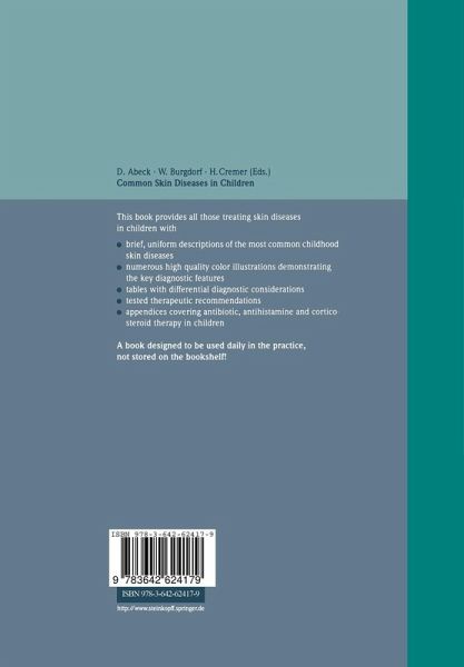 Acne.- Alopecia Areata.- Arthropod Bite and Sting Reactions.- Atopic Dermatitis.- Burns and Sunburn.- Diaper Dermatitis.- Granuloma Annulare.- Herpes Simplex Virus Infections.- Impetigo.- Lice Infestations.- Lichen Sclerosus et Atrophicus.- Lyme Borreliosis.- Cutaneous Mastocytosis.- Molluscum Contagiosum.- Perioral Dermatitis.- Pityriasis Lichenoides.- Pityriasis Rosea.- Psoriasis.- Scabies.- Seborrheic Dermatitis.- Tinea Capitis.- Urticaria.- Varicella-Zoster Virus Infections.- Vascular Anomalies.- Viral Exanthems.- Warts.- Appendices.