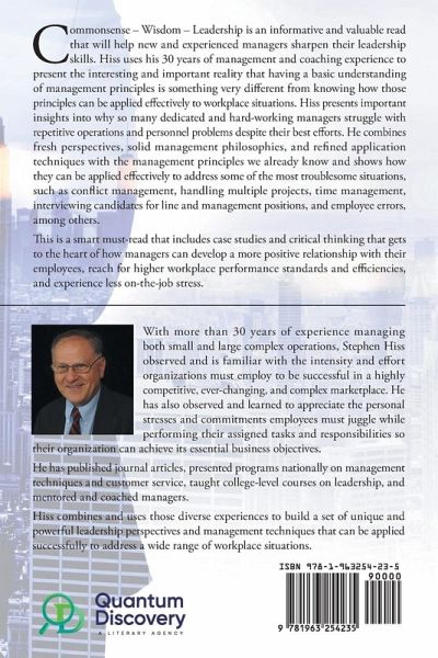 Commonsense - Wisdom - Leadership is an informative and valuable read that will help new and experienced managers sharpen their leadership skills. Hiss uses his 30 years of management and coaching experience to present the interesting and important reality that having a basic understanding of management principles is something very different from knowing how those principles can be applied effectively to workplace situations. Hiss presents important insights into why so many dedicated and hard-working managers struggle with repetitive operations and personnel problems despite their best efforts. He combines fresh perspectives, solid management philosophies, and refined application techniques with the management principles we already know and shows how they can be applied effectively to address some of the most troublesome situations, such as conflict management, handling multiple projects, time management, interviewing candidates for line and management positions, and employee errors, among others. This is a smart must-read that includes case studies and critical thinking that gets to the heart of how managers can develop a more positive relationship with their employees, reach for higher workplace performance standards and efficiencies, and experience less on-the-job stress. With more than 30 years of experience managing both small and large complex operations, Stephen Hiss observed and is familiar with the intensity and effort organizations must employ to be successful in a highly competitive, ever-changing, and complex marketplace. He has also observed and learned to appreciate the personal stresses and commitments employees must juggle while performing their assigned tasks and responsibilities so their organization can achieve its essential business objectives. He has published journal articles, presented programs nationally on management techniques and customer service, taught college-level courses on leadership, and mentored and coached managers. Hiss combines and uses those diverse experiences to build a set of unique and powerful leadership perspectives and management techniques that can be applied successfully to address a wide range of workplace situations.
