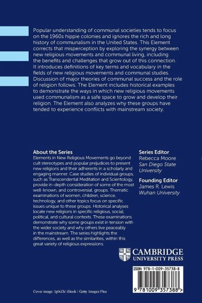 Popular understanding of communal societies tends to focus on the 1960s hippie colonies and ignores the rich and long history of communalism in the United States. This Element corrects that misperception by exploring the synergy between new religious movements and communal living, including the benefits and challenges that grow out of this connection. It introduces definitions of key terms and vocabulary in the fields of new religious movements and communal studies. Discussion of major theories of communal success and the role of religion follows. The Element includes historical examples to demonstrate the ways in which new religious movements used communalism as a safe space to grow and develop their religion. The Element also analyzes why these groups have tended to experience conflicts with mainstream society.