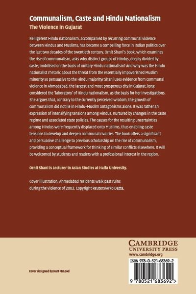 Belligerent Hindu nationalism, accompanied by recurring communal violence between Hindus and Muslims, has become a compelling force in Indian politics over the last two decades. Ornit Shani's book examines the rise of Hindu nationalism, asking why distinct groups of Hindus, deeply divided by caste, mobilised on the basis of unitary Hindu nationalism, and why the Hindu nationalist rhetoric about the threat of the impoverished Muslim minority was so persuasive to the Hindu majority. Using evidence from communal violence in Gujarat, Shani argues that the growth of communalism was not simply a result of Hindu-Muslim antagonisms, but was driven by intensifying tensions among Hindus, nurtured by changes in the relations between castes and associated state policies. These, in turn, were frequently displaced onto Muslims, thus enabling caste conflicts to develop and deepen communal rivalries. The book offers a challenge to previous scholarship on the rise of communalism, which will be welcomed by students and professionals.