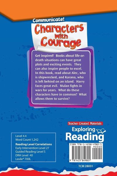 Books about life-or-death situations can have great plots and exciting events. They can also inspire people to excel. In this nonfiction book, you'll read about Alec, who is shipwrecked, and Karana, who is left behind on an island. Mulan fights in wars for years. What do these books communicate about survival? What allows these characters to survive? This title includes important text features such as a glossary, index, and table of contents to engage students in reading as they develop their comprehension, vocabulary, and literacy skills. The Reader's Guide and culminating activity direct students back to the text as they develop their higher-order thinking skills. Check It Out! provides resources for additional reading and learning. With TIME For Kids content, this book aligns with national and state standards and will keep grade 4 students engaged in learning.
