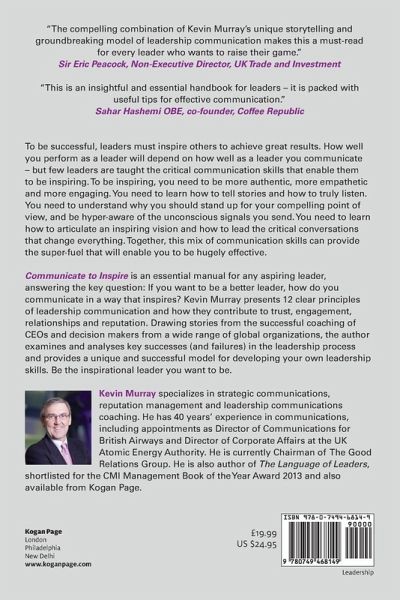 Inspirational leaders make us want to achieve more. They persuade us to their cause, win our active support, help us to work better together and make us feel proud to be part of the teams they create. In short, how well you perform as a leader depends on how well you communicate. So if we want to be better leaders ourselves, how do we communicate in a way that inspires? Shortlisted for the 2014/15 CMI Management Book of the Year Award, Communicate to Inspire is an essential manual for any aspiring leader, answering these key practical questions. Kevin Murray presents a model that charts the leadership process and draws stories from the years of experience he has had coaching top leaders from a wide range of organizations. He examines and analyzes some of the key successes (and failures) in leadership and provides a unique and successful model for developing your own leadership skills. Online supporting resources for this book include a supplement article from the author.