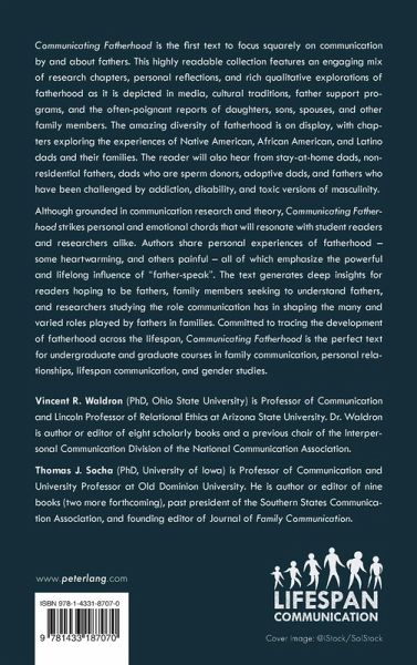 "In this pioneering book Communicating Fatherhood, the editors have assembled an impressive range of scholarly and practitioner voices. The focus on communication and fathers is unparalleled in the current market and makes an outstanding companion to books focusing on maternal communication. Chapters cover essential topics, such as how father ideals have evolved over time, father-offspring bonds, and influences of traditional and emerging media on fatherhood. The book provides an eclectic and multivocal view of fatherhood, examining the experiences of dads who are Black, Latino, Native American, adoptive, working and stay-at-home, nonresidential, gay, recent immigrants, and dads with disabilities."