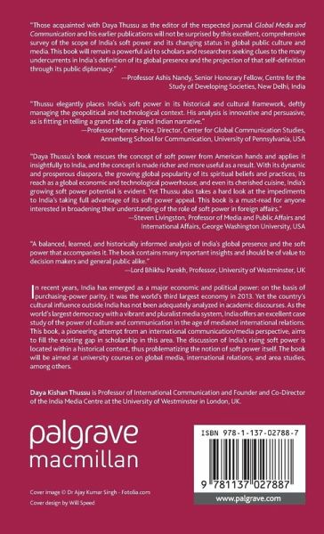 "Daya Thussu's book rescues the concept of soft power from American hands and applies it insightfully to India, and the concept is made richer and more useful as a result. With its dynamic and prosperous diaspora, the growing global popularity of its spiritual beliefs and practice, its reach as a global economic and technological powerhouse, and even its cherished cuisine, India's growing soft power potential is evident. Yet Thussu also takes a hard look at the impediments that stand in the way of India taking full advantage of its soft power appeal. This book is a must-read for anyone interested in broadening their understanding of the role of soft power in foreign affairs." - Steven Livingston, Professor of Media and Public Affairs and International Affairs, George Washington University, USA
