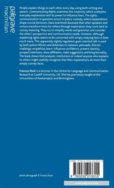 'Communicating Rights makes a significant contribution not only to the field of language and the law but also to the UK justice system. Author Frances Rock should be applauded for her balanced yet sharp analyses of written and spoken rights communication, supported by her extensive repertoire of sociolinguistic tools for discourse analysis...I would recommend this book to scholars and legal professionals as a classic in rights communication.' Ikuko Nakane, The International Journal of Speech, Language and the Law