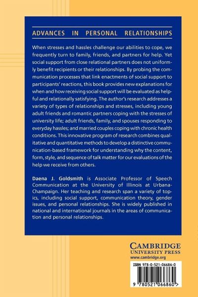 When stresses and hassles challenge our abilities to cope, we frequently turn to family, friends, and partners for help. Yet social support from close relational partners does not uniformly benefit recipients or their relationships. By probing the communication processes that link enactments of social support to participants' reactions, this book provides new explanations for when and how receiving social support will be evaluated as helpful and relationally satisfying. The author's research addresses a variety of types of relationships and stresses, including young adult friends and romantic partners coping with the stresses of university life; adult friends, family and spouses responding to everyday hassles' and married couples coping with chronic health conditions. This innovative program of research combines qualitative and quantitative methods to develop a distinctive communication-based framework for understanding why the content, form, style, and sequence of talk matter for our evaluations of the help we receive from others.