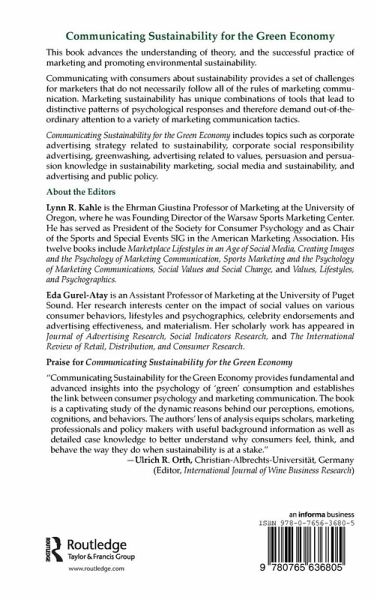 With chapters written by experts in their field, this volume advances the understanding of theory and successful practice of marketing and promoting environmental sustainability. Some experts predict that the next big trend in business will involve the green economy. Yet, communicating sustainability to consumers provides a set of challenges for marketers that do not necessarily follow all the rules of other types of marketing communication. In many ways the concept of sustainability challenges the core ideals of promoting consumption. Accordingly, this book identifies for researchers and practitioners the barriers that keep customers from engaging in environmentally sustainable consumption and find ways to overcome those barriers. The book includes topics such corporate advertising strategy related to sustainability, corporate social responsibility advertising, greenwashing, advertising related to values, persuasion and persuasion knowledge in sustainability marketing, social media and sustainability, and advertising and public policy.