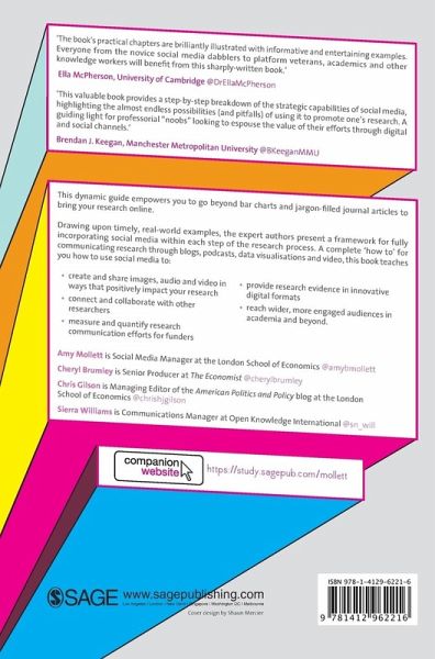 Drawing upon a wealth of timely, real-world examples, the authors present a framework for fully incorporating social media within each step of the research process. From visualising available data to tailoring social media to meet your needs, this book explores proactive ways to share cutting edge research. A complete how to for communicating research through blogs, podcasts, data visualisations, and video, it teaches you how to use social media to: