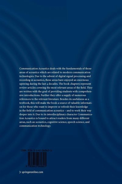 Communication Acoustics deals with the fundamentals of those areas of acoustics which are related to modern communication technologies. Due to the advent of digital signal processing and recording in acoustics, these areas have enjoyed an enormous upswing during the last 4 decades. The book chapters represent review articles covering the most relevant areas of the field. They are written with the goal of providing students with comprehensive introductions. Further they offer a supply of numerous references to the relevant literature. Besides its usefulness as a textbook, this will make the book a source of valuable information for those who want to improve or refresh their knowledge in the field of communication acoustics - and to work their way deeper into it. Due to its interdisciplinary character Communication Acoustics is bound to attract readers from many different areas, such as: acoustics, cognitive science, speech science, and communication technology.