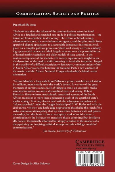 The book examines the reform of the communication sector in South Africa as a detailed and extended case study in political transformation - the transition from apartheid to democracy. The reform of broadcasting, telecommunications, the state information agency and the print press from apartheid-aligned apparatuses to accountable democratic institutions took place via a complex political process in which civil society activism, embodying a post-social democratic ideal, largely won out over the powerful forces of formal market capitalism and older models of state control. In the cautious acceptance of the market, the civil society organizations sought to use the dynamism of the market while thwarting its inevitable inequities. Forged in the crucible of a difficult transition to democracy, communication reform in South Africa was navigated between the National Party's embrace of the market and the African National Congress leadership's default statist orientation.