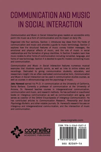 Communication and Music in Social Interaction gives readers an accessible entry point into music as a form of communication and its impact on daily life. Organized into four sections, Section 1 introduces key ideas from the fields of communication and music and provides a guide to music terminology. Section 2 explores how the structural features of music convey hidden messages, the emotional and physical effects of music, and the role of music in social relationships and the formation of group identities. In Section 3 readers learn how music relates to other forms of communication including nonverbal, language, and forms of new technology. Section 4 is devoted to specific models connecting music and communication. Communication and Music in Social Interaction features numerous musical examples that illustrate specific points, as well as links to online videos and recordings. Dedicated to giving communication students, educators, and researchers insight into an often overlooked communicative form, Communication and Music in Social Interaction can be used in communication studies courses, as well as courses in ethnomusicology and the psychology of music. Jake Harwood earned his Ph.D. in communication at the University of California, Santa Barbara. Currently a professor of communication at the University of Arizona, Dr. Harwood teaches courses in intergenerational communication, communication and music, and research methods. He has authored or coauthored books on intergroup communication as well as communication and aging, and serves as coeditor of the Oxford Encyclopedia of Intergroup Communication. He has contributed articles to Communication Research, Personality and Social Psychology Bulletin, and other notable journals. Dr. Harwood's research focuses on intergroup and intergenerational communication, and the intersection of music and communication.