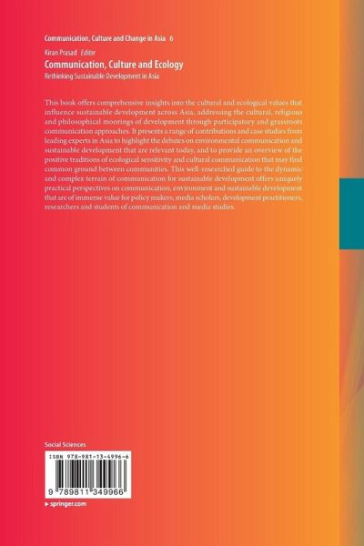 Culture, Communication and Capacity for Sustainable Development.- Ecology and Sufficiency for Sustainable Development: Perspectives from Thailand.- Right Effort for Right Livelihood: Historical Model of Sustainable Development from Sri Lanka.- Traditional Knowledge Systems, Culture and Environmental Sustainability: Concepts from Odisha, India.- Communication for Sustainable Development in the Nilgiri Biosphere Reserve.- Indigenous Communities of the Chittagong Hill Tracts in Bangladesh: Coping with environmental perils and scoping adaptive capacities.- Towards the Sufficiency Economy Perspective: The Mass Media and Cultivation of Social Capital among the Rural Youth in Thailand.- Media Perspectives the Particulate Matter (PM 2.5) Crisis in China.- Communication of Inclusive Innovation for Sustainable Development in India.- Future Directions in Communication and Culture for Sustainable Development.