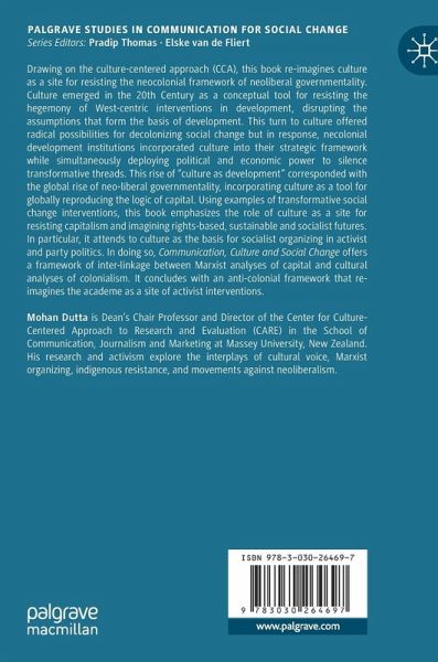 Drawing on the culture-centered approach (CCA), this book re-imagines culture as a site for resisting the neocolonial framework of neoliberal governmentality. Culture emerged in the 20th Century as a conceptual tool for resisting the hegemony of West-centric interventions in development, disrupting the assumptions that form the basis of development. This turn to culture offered radical possibilities for decolonizing social change but in response, necolonial development institutions incorporated culture into their strategic framework while simultaneously deploying political and economic power to silence transformative threads. This rise of "culture as development" corresponded with the global rise of neo-liberal governmentality, incorporating culture as a tool for globally reproducing the logic of capital. Using examples of transformative social change interventions, this book emphasizes the role of culture as a site for resisting capitalism and imagining rights-based,sustainable and socialist futures. In particular, it attends to culture as the basis for socialist organizing in activist and party politics. In doing so, Culture, Participation and Social Change offers a framework of inter-linkage between Marxist analyses of capital and cultural analyses of colonialism. It concludes with an anti-colonial framework that re-imagines the academe as a site of activist interventions.