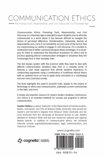 Communication Ethics: Promoting Truth, Responsibility, and Civil Discourse in a Polarized Age is intended to teach students how to ethically communicate in a world where it has become difficult to navigate the strains of perceived difference. Disinformation, dishonesty, denials of responsibility and a lack of accountability are just some of the factors that are compromising our ability to engage in civil discourse. For a student to understand how to better communicate given these challenges, it is necessary for them to understand the theoretical foundation for ethics and to practice applying ethical communication strategies to situations they will increasingly face in their everyday lives. The text equips readers with the practical skills they need to deal with difficult communication situations they face in a complex world. It features a case study approach that affords students experience in constructing arguments using a combination of traditional ethical theory with an updated focus on how to apply those principles in a challenging and ever more polarized society. The book highlights the need to promote truth, speaks to the impact of technology on ethics and communication, addresses current controversies in the field, and more. A timely and essential resource for today's modern students, Communication Ethics is an excellent textbook for courses and programs in ethical communication.