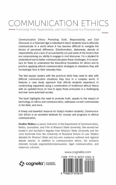 Communication Ethics: Promoting Truth, Responsibility, and Civil Discourse in a Polarized Age is intended to teach students how to ethically communicate in a world where it has become difficult to navigate the strains of perceived difference. Disinformation, dishonesty, denials of responsibility and a lack of accountability are just some of the factors that are compromising our ability to engage in civil discourse. For a student to understand how to better communicate given these challenges, it is necessary for them to understand the theoretical foundation for ethics and to practice applying ethical communication strategies to situations they will increasingly face in their everyday lives. The text equips readers with the practical skills they need to deal with difficult communication situations they face in a complex world. It features a case study approach that affords students experience in constructing arguments using a combination of traditional ethical theory with an updated focus on how to apply those principles in a challenging and ever more polarized society. The book highlights the need to promote truth, speaks to the impact of technology on ethics and communication, addresses current controversies in the field, and more. A timely and essential resource for today's modern students, Communication Ethics is an excellent textbook for courses and programs in ethical communication.