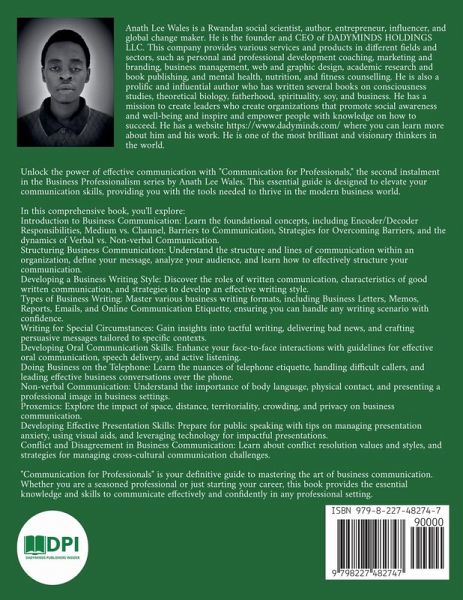 Book Description: Unlock the power of effective communication with "Communication for Professionals," the second instalment in the Business Professionalism series by Anath Lee Wales. This essential guide is designed to elevate your communication skills, providing you with the tools needed to thrive in the modern business world. In this comprehensive book, you'll explore:Introduction to Business Communication: Learn the foundational concepts, including Encoder/Decoder Responsibilities, Medium vs. Channel, Barriers to Communication, Strategies for Overcoming Barriers, and the dynamics of Verbal vs. Non-verbal Communication. Structuring Business Communication: Understand the structure and lines of communication within an organization, define your message, analyze your audience, and learn how to effectively structure your communication. Developing a Business Writing Style: Discover the roles of written communication, characteristics of good written communication, and strategies to develop an effective writing style. Types of Business Writing: Master various business writing formats, including Business Letters, Memos, Reports, Emails, and Online Communication Etiquette, ensuring you can handle any writing scenario with confidence. Writing for Special Circumstances: Gain insights into tactful writing, delivering bad news, and crafting persuasive messages tailored to specific contexts. Developing Oral Communication Skills: Enhance your face-to-face interactions with guidelines for effective oral communication, speech delivery, and active listening. Doing Business on the Telephone: Learn the nuances of telephone etiquette, handling difficult callers, and leading effective business conversations over the phone. Non-verbal Communication: Understand the importance of body language, physical contact, and presenting a professional image in business settings. Proxemics: Explore the impact of space, distance, territoriality, crowding, and privacy on business communication. Developing Effective Presentation Skills: Prepare for public speaking with tips on managing presentation anxiety, using visual aids, and leveraging technology for impactful presentations. Conflict and Disagreement in Business Communication: Learn about conflict resolution values and styles, and strategies for managing cross-cultural communication challenges. "Communication for Professionals" is your definitive guide to mastering the art of business communication. Whether you are a seasoned professional or just starting your career, this book provides the essential knowledge and skills to communicate effectively and confidently in any professional setting.