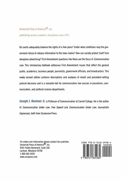 Designed as an introductory textbook for communication law courses in journalism, communication, and political science departments, Communication Law addresses some of the most pressing First Amendment questions and issues.