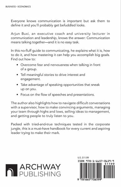 Everyone knows communication is important but ask them to define it and you'll probably get befuddled looks. Arjun Buxi, an executive coach and university lecturer in communication and leadership, knows the answer: Communication means talking together-and it is no easy task. In this no-fluff guide to communicating, he explains what it is, how to do it, and how mastering it can help you accomplish big goals. Find out how to: ¿ Overcome fear and nervousness when talking in front of a group. ¿ Tell meaningful stories to drive interest and engagement. ¿ Take advantage of speaking opportunities that sneak up on you. ¿ Focus on the flow of speeches and presentations. The author also highlights how to navigate difficult conversations with a supervisor, how to make convincing arguments, managing your team through highs and lows, selling ideas to management, and getting people to truly listen to you. Packed with tried-and-true techniques tested in the corporate jungle, this is a must-have handbook for every current and aspiring leader trying to make their mark.