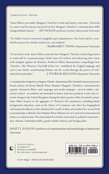 This book looks at British Prime Minister Margaret Thatcher from 1975 through 1991, during which Mrs. Thatcher was Conservative Party Leader and then Prime Minister. Janet Fallon emphasizes her rhetorical appeals to enact a vision of social, economic, and political change in Britain.